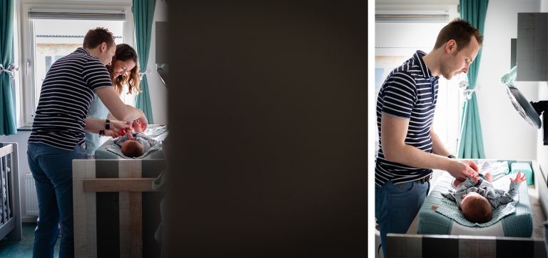 Omdat ik newbornshoots altijd op de ‘Lifestyle’ manier fotografeer, kom ik lekker bij jullie thuis. Ik fotografeer de dagelijkse dingen, het kroelen, het voeden, het badderen. Dié dingen die zo kenmerkend zijn voor de eerste weken na de geboorte. Super ongedwongen en super ‘echt’.
