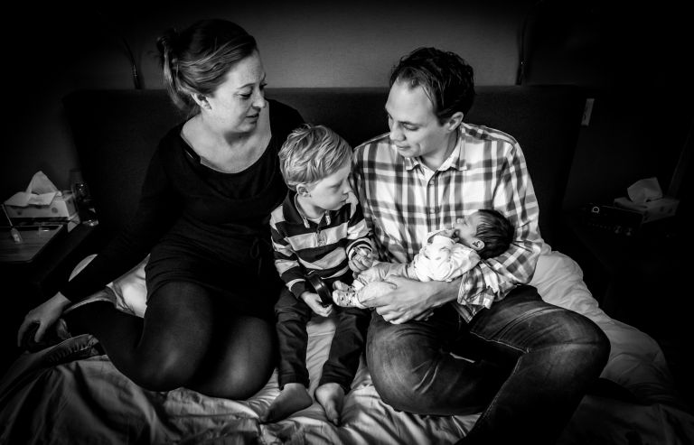 Ik bezocht de kersverse paps en mams bij hen thuis in hun leuke huis in Capelle aan den Ijssel en fotografeerde zoals bij iedere Lifestyle newbornshoot alle échte ‘dingen’. Want, een lifestyle newbornshoot is een niet-geposeerde fotoshoot, wat betekent dat ik foto’s maak van dingen zoals ze gaan, in de eigen omgeving. Geen ongemakkelijk lijkende, geposeerde foto’s met mutsjes en pakjes en in een onpersoonlijke fotostudio, maar lekker bij jullie thuis. Op de bank, op bed in de slaapkamer of in het babykamertje. We fotograferen de ‘normale’ bezigheden die de kraamtijd zo typeren. Zo kun je later écht terugzien hoe het was en hopelijk weer helemaal dat speciale gevoel terugkrijgen. En omdat ik newbornshoots altijd op de Lifesytyle wijze fotografeer, hoeven de kleintjes ook niet perse diep te slapen. Dit was bij de foto’s van Olivier al zo leuk, en ook bij Emma was er weer genoeg vast te leggen!